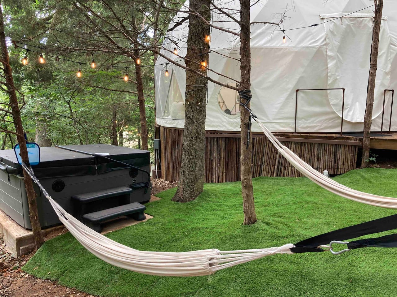 This experience is "glamping" --- glamorous camping! The dome's walls are thin like a tent. So, as in other outdoor camping, sights and sounds of nature (insects, birds, animals, snakes, etc.) might be experienced. So, if you are a light sleeper, please bring your own earplugs or white noise machine. Our OakHill mascot, a black Aussie-Doodle, roams the property when we are not home. He has a big bark, but is really friendly. So, if you are afraid of dogs, we might not be the right place for your stay. For photographers: Please make an inquiry about the details of your desired photoshoot. Be advised, we do not allow the dome to be used as a temporary studio in which multiple clients will come and go for scheduled appointments. The parking area is monitored by video cameras. Adults only. The SkyDome is designed to be a retreat for couples. We love children, but the SkyDome is not set up with safety features or activities for kids. NO PETS, not even service animals. Violators must find a local boarding kennel or will be asked to leave. Smoking and vaping is only allowed outside. Evidence of indoor smoking will incur an additional $200 cleaning fee. HOT TUB WAIVER OF LIABILITY: Guests are welcome to enjoy the hot tub during their stay. By choosing to reserve the SkyDome, guests acknowledge and accept that they use the hot tub at their own risk. The host is not liable for any injuries, accidents, or health-related issues that may arise from its use. Please follow all posted safety guidelines.